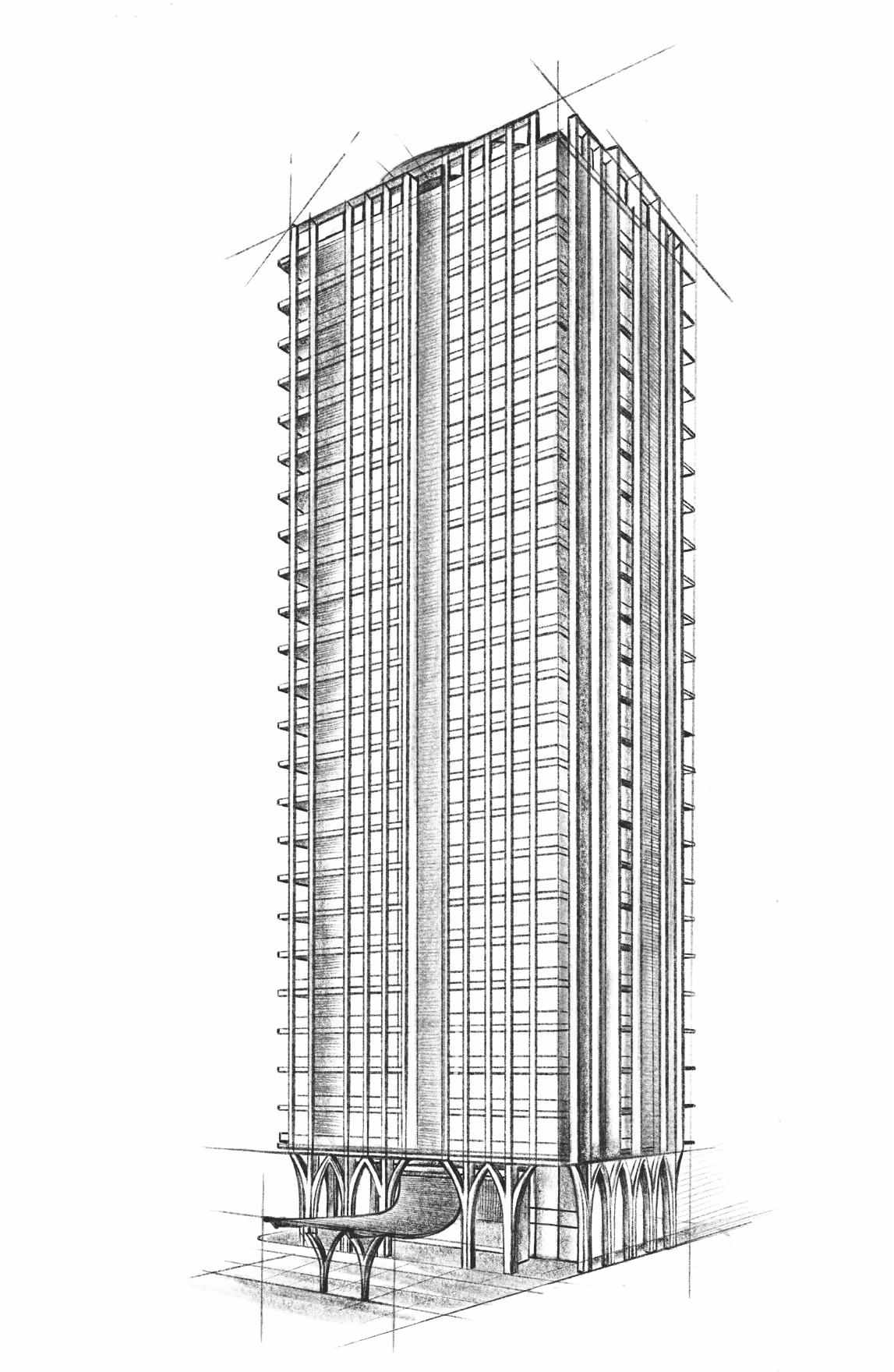 Soportada por arcadas ligeras con un diseño que conecta el intelecto con la vanguardia, el proyecto se eleva sobre una gran plaza abierta. Su arquitectura le otorga monumentalidad, convirtiéndose en un hito en el privilegiado corazón de San Pedro.